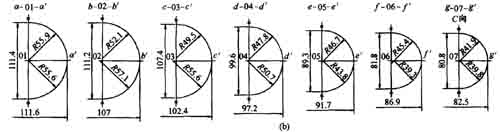 (a)葉輪軸面圖和平面圖 (b)流道截面圖主要流線坐標(biāo)如表1、2、3所示。