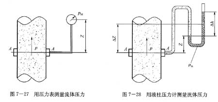 2)用液柱壓力計測量截面A-A處的壓力,圖7-28所示