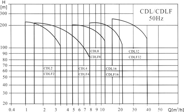 【CDLF型立式不銹鋼多級泵】性能圖譜: