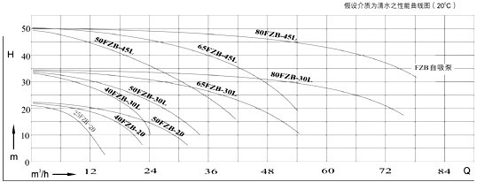 【FZB型氟塑料自吸泵】性能曲線圖: