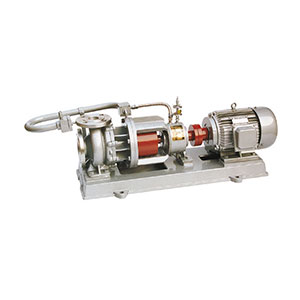 高溫磁力泵在運(yùn)行時(shí),必須用內(nèi)磁轉(zhuǎn)子與隔離套之間的環(huán)隙面積和滑動(dòng)軸承的摩擦副清洗和冷卻少量液體。冷卻劑的流量通常為設(shè)計(jì)流量的2%≤3%。內(nèi)磁轉(zhuǎn)子與隔離套之間的環(huán)隙區(qū)域由于渦流而產(chǎn)生較高的熱量。當(dāng)冷卻潤(rùn)滑劑不夠或沖洗孔不光滑、堵塞時(shí),介質(zhì)溫度高于永磁體工作溫度,使內(nèi)磁轉(zhuǎn)子逐漸失去磁性,使磁傳動(dòng)失效。當(dāng)介質(zhì)為水或水基液體時(shí),環(huán)隙區(qū)溫升可維持在3≤5℃,當(dāng)介質(zhì)為烴或油時(shí),環(huán)隙區(qū)溫升可維持在5≤8℃。